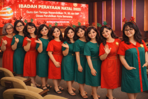 Di hadapan para siswa, rekan guru dari sekolah lain, dan jemaat yang hadir, suara mereka berpadu indah. Harmoni vocal group menyentuh, sementara alunan angklung mengisi ruang dengan nuansa damai. Tepuk tangan menggema, bukan hanya karena penampilan yang rapi dan memukau, tetapi karena ketulusan yang terasa.