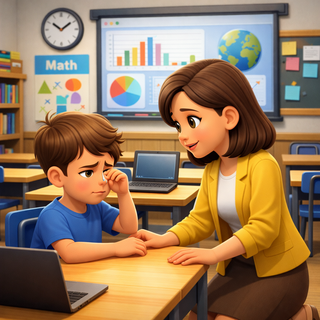 Setelah pelajaran usai dan teman-temannya pulang, Irvan memberanikan diri mendekati Bu Julia. Suaranya bergetar, air mata mulai mengalir, pipinya memerah karena menahan malu. Ia mengaku sangat ingin memahami pelajaran, sudah berusaha memperhatikan sebaik mungkin, tetapi tetap belum mengerti. Ia takut bertanya karena sering disoraki dan dianggap bodoh. Bu Julia mendengarkan dengan penuh empati, lalu menenangkannya dan menawarkan solusi: belajar bersama sepulang sekolah, di jam khusus tanpa tekanan. Mendengar itu, Irvan menghela napas lega, seolah beban di dadanya sedikit terangkat.