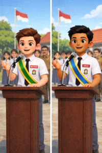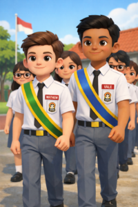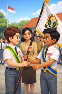 Pagi itu, lapangan upacara sekolah tampak lebih khidmat dari biasanya. Matahari baru saja naik, sinarnya lembut ditutup awan mendung menudungi barisan para siswa yang berdiri rapi. Di sisi kanan berdiri para pengurus OSIS lama, sementara di sisi kiri berbaris para pengurus OSIS yang baru. Dengan langkah tegap dan serempak, kedua barisan itu maju ke depan, tepat di hadapan kepala sekolah dan para guru.