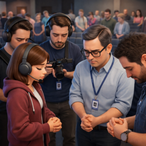 Sebelum pulang, tim multimedia berkumpul kembali untuk evaluasi dan berdoa. Mereka bersyukur tidak ada slide yang berantakan. Video pengumuman tampil tepat waktu. Semua mengalir tanpa gangguan.